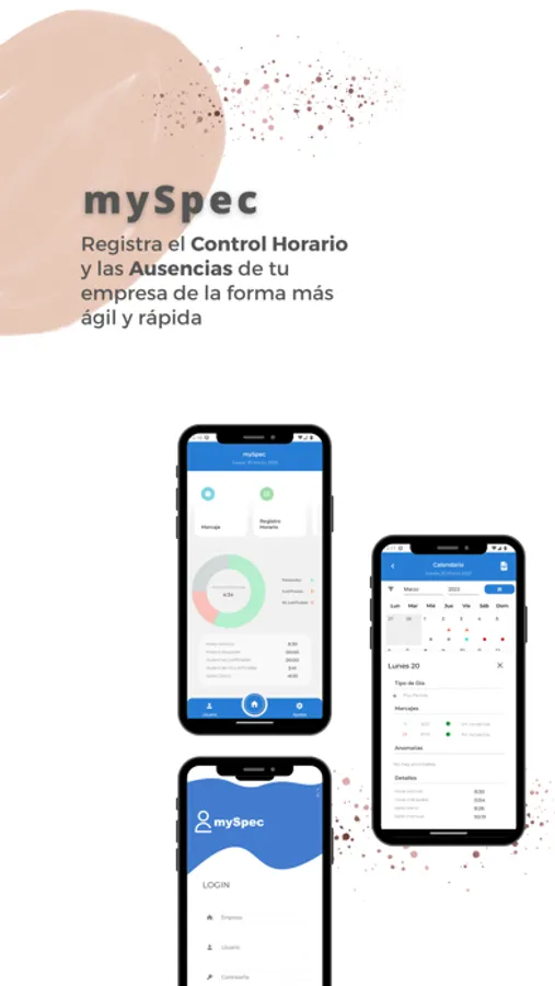 mySpec es la app de control horario ideal para empresas que tengan personal desplazado, o que realiza su trabajo fuera de la oficina (técnicos, comerciales, empleados temporales, empleados que realizan teletrabajo, etc.) y que quieran registrar el tiempo trabajado en la jornada laboral.
