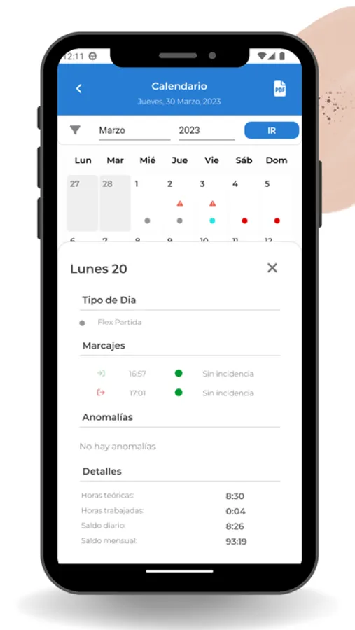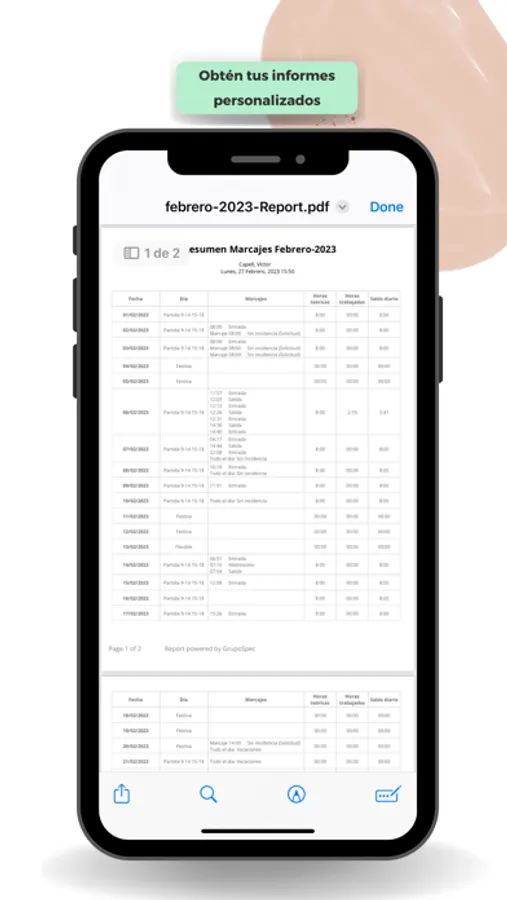 · Permite descargar informes en formato pdf para que cada empleado disponga de su resumen de fichajes mensuales.