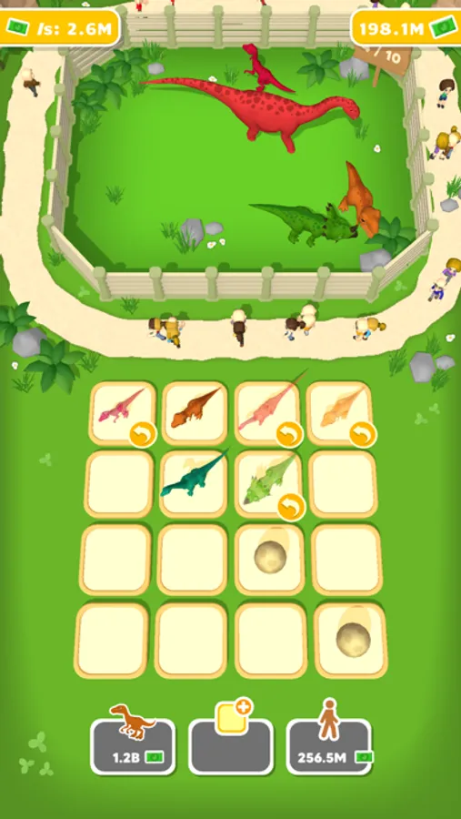 You're the owner of your own dino park, merge two dinos of the same species to discover a new one and maybe the legendary T-Rex? Expose your creations in a box to attract as many tourists as possible and earn a lot of money!