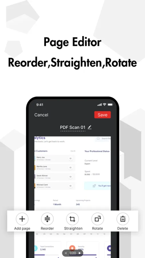 · Edit your PDF files by adding, reordering, cropping, rotating pages.