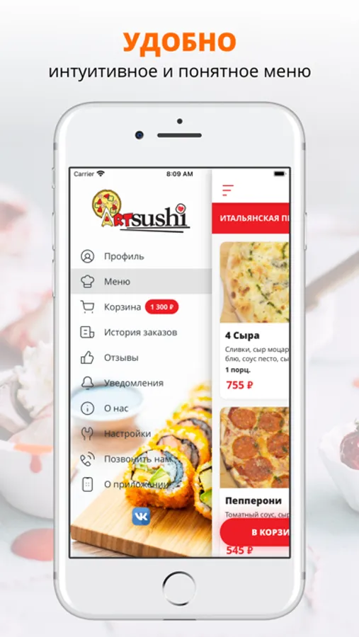 Скачивайте наше приложение, оформляйте заказ и наслаждайтесь любимой едой, где бы Вы ни были! Приятного аппетита!