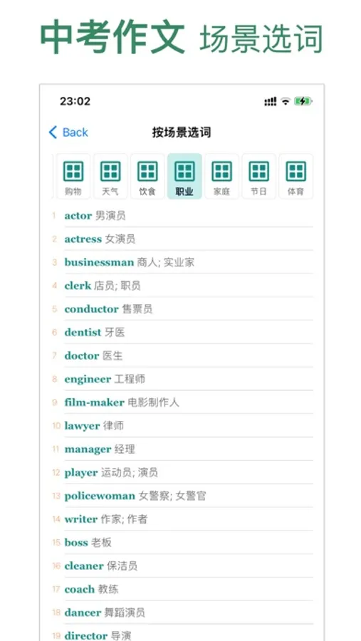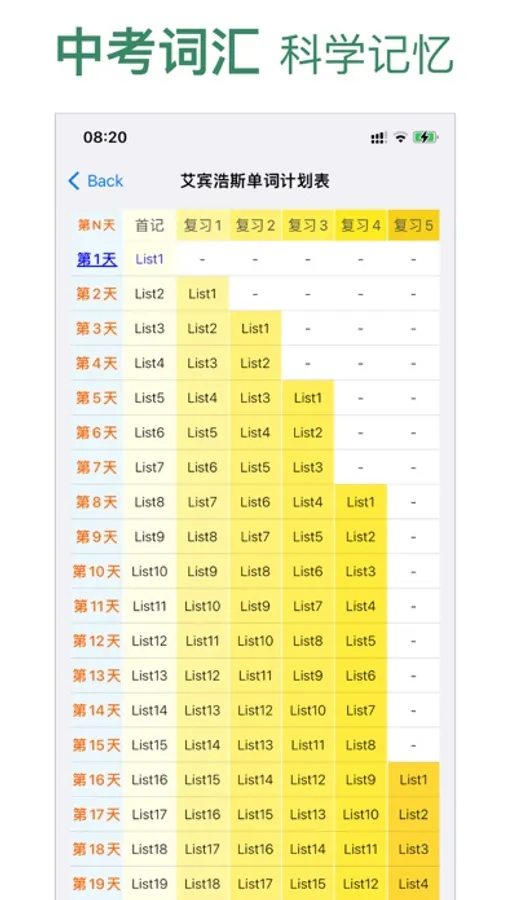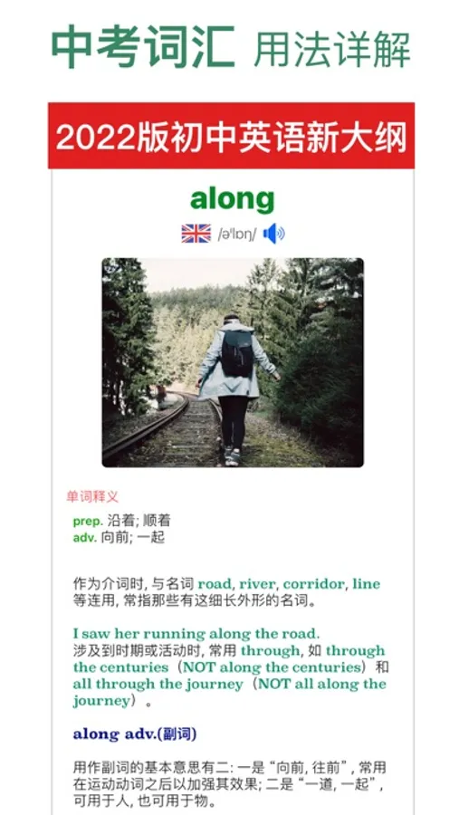 全面覆盖课本、大纲、必要的扩展词汇以及在中考阅读理解和完形填空中中经常碰到的高频词汇, 以艾宾浩斯记忆曲线作为记忆理论指导, 结合听背方式, 用全局视野,实现高效单词记忆, 实现6次以上的重现率,结合软件中的词汇学习,测试及生词本工具,多种方式增强记忆效果,立体记忆.