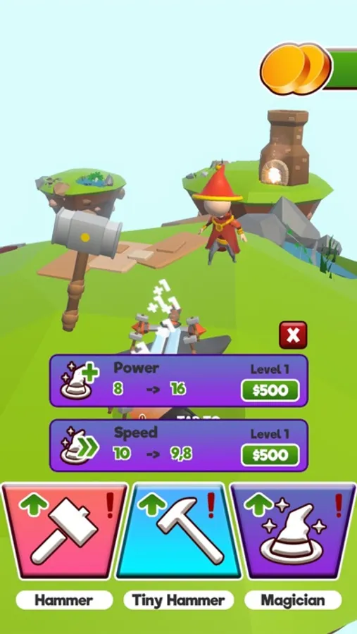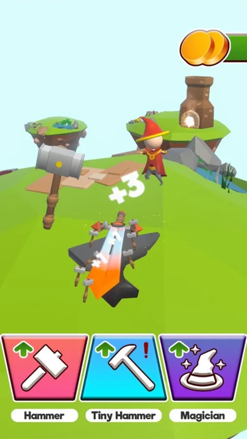 Get helpers such as tiny hammers and magicial hammer with your coin and finish your swords and shields quicker!