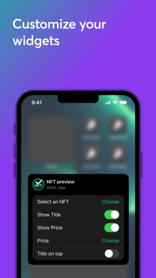 You can customize widgets by choosing to display the NFT title and price.