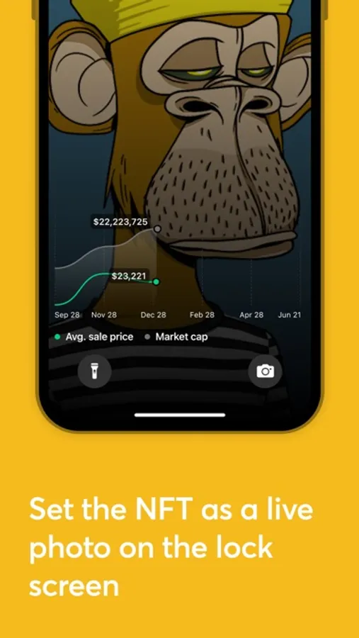 Choose the NFT you like and create wallpaper for your iPhone lock screen. We offer two options: set it as a picture or as a live photo.