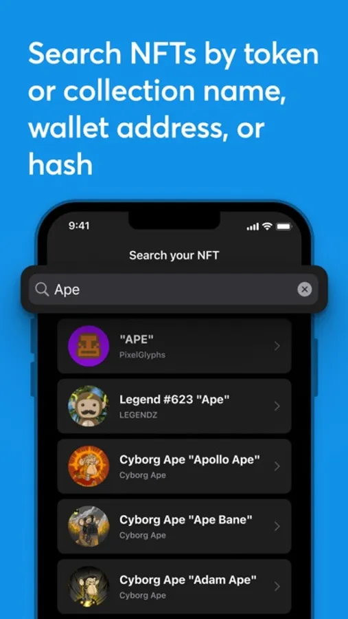 Search for NFTs by token or collection name, wallet address or hash, add them to your favorites and create wallpapers that you will enjoy looking at.