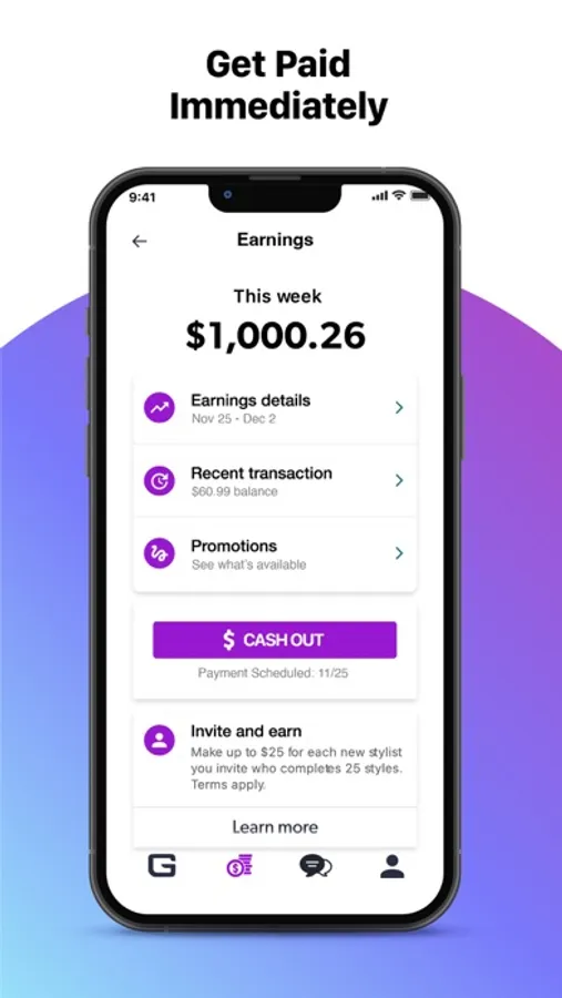 Spend your time doing the things you love. Glamo’s Professional App offers security and support to be your own boss, create your own schedule, build your business, and earn at your own convenience.