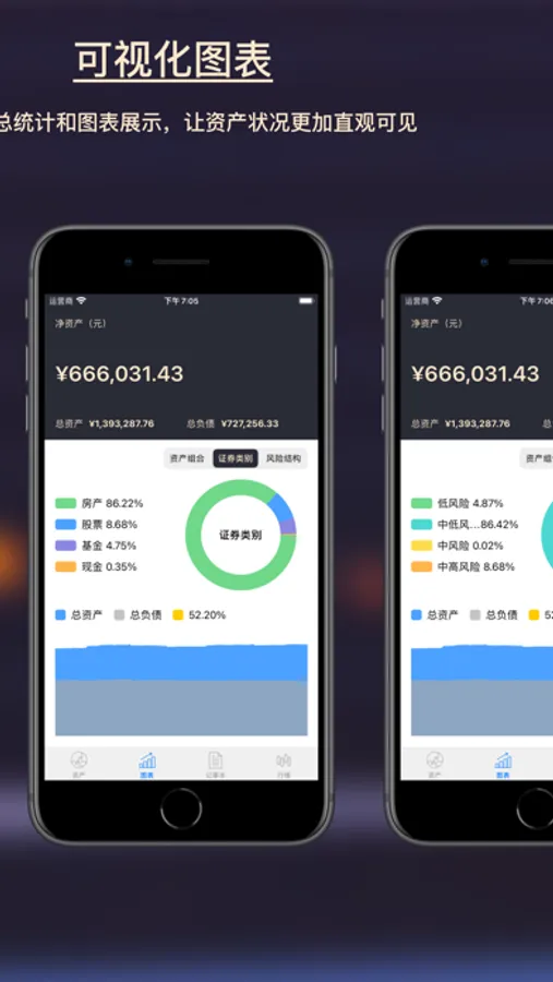 同时通过图表展示,让你对个人资产质量和风险结构有更直观地了解,能够及时发现风险并调整组合和配置。