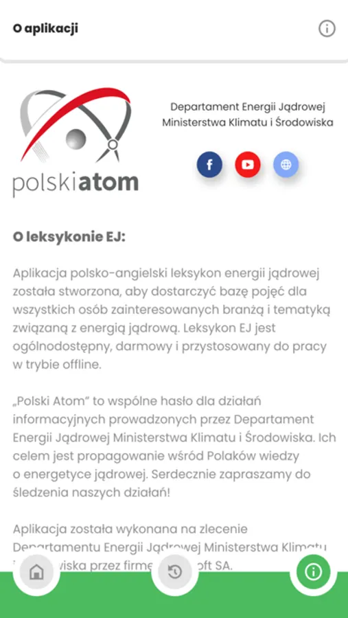 Aplikacja polsko-angielski leksykon energii jądrowej została stworzona, aby dostarczyć bazę pojęć dla wszystkich osób zainteresowanych branżą i tematyką związaną z energią jądrową. Leksykon jest ogólnodostępny, darmowy i przystosowany do pracy w trybie offline.