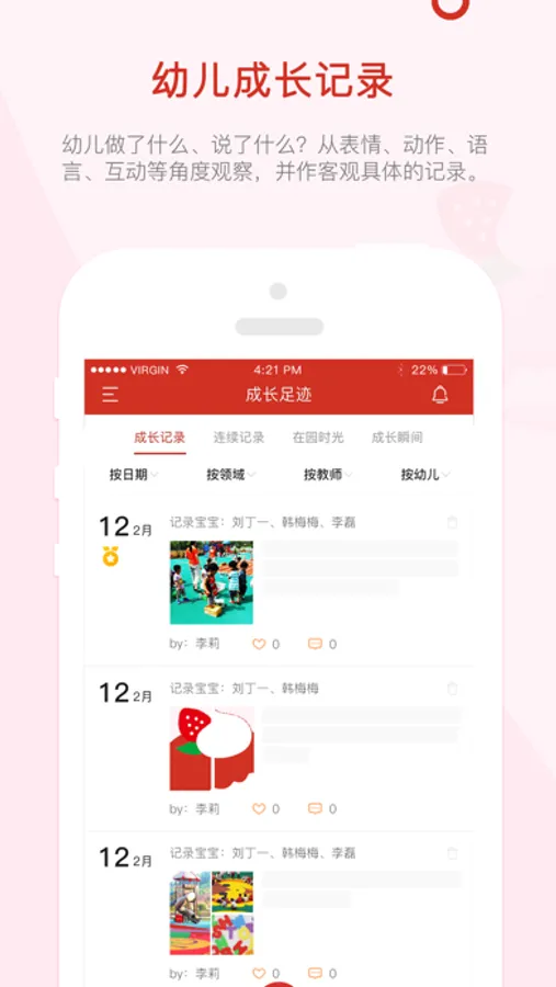 “人民泡芙幼教”是一款基于幼儿园实际保教场景,旨在帮助教师高效、科学地进行儿童行为观察与发展评价的信息化工具。“泡芙”拥有科学的、结构化的观察体系和评价指标,语音录入、在线下载等便捷化的操作流程,助力教师对儿童进行个性化、全方位、多角度的观察与评价;更有观察记录线上批阅、及时共享,观察数据实时统计、自动分析,评价结果可视化呈现、一键导出等强大功能,促进园所保教质量提升,优化幼儿园业务管理。