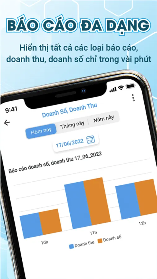 • Báo cáo doanh số, doanh thu hiển thị theo ngày/tháng/năm và trực quan theo biểu đồ, ngoài ra xem giữa các chi nhánh nhanh chóng và tiện lợi.