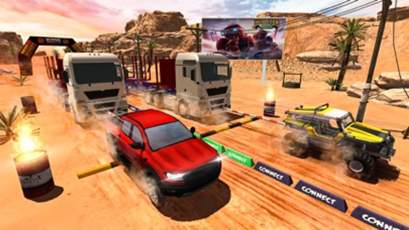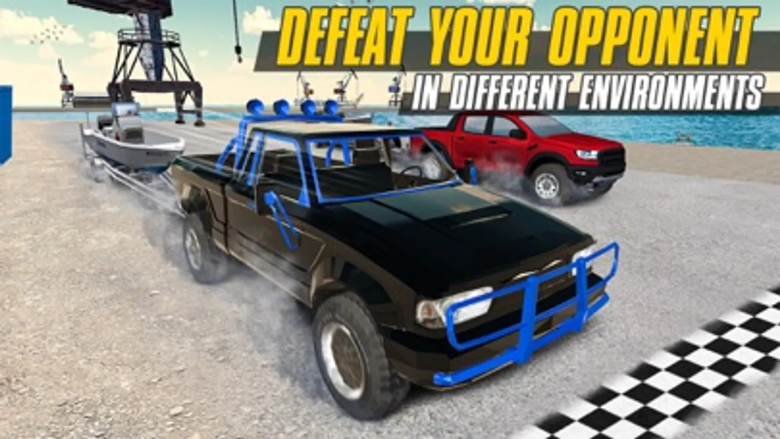 Truck Towing Race is the latest truck pulling and tractor pulling simulation game in a full 3D environment. With over 20 trucks and tractors and 10 vehicle classes, the pulling never ends. Upgrade your vehicle's engine, supercharger/turbocharger, fuel system and more at the garage. Adjust the weights and tire pressure to accommodate the range of track conditions. Pull at the county fair in different day and night environments or in the indoor grand arena. Work your way up through the different competitions: county, state, regional, national, and grand national; earning money and points for winning. With this truck pulling and tractor pulling simulator, you will need to control the throttle and clutch perfectly to get your arena shaking machine down the track. Build your RPM, engine temp, boost and take off down the track with realistic dirt and smoke effects. Enjoy a multitude of camera angles, and tilt your device to steer in-bounds. Watch out for blown engines and broken axles!