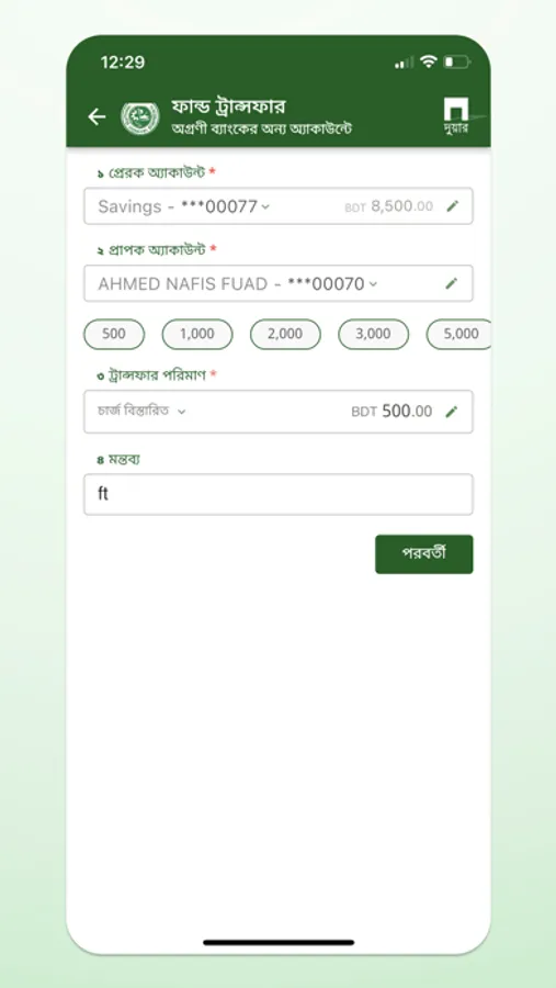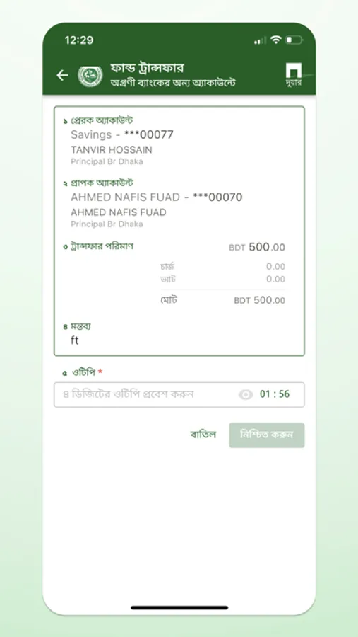 iii) Agrani Bank A/C to Agrani Bank A/C