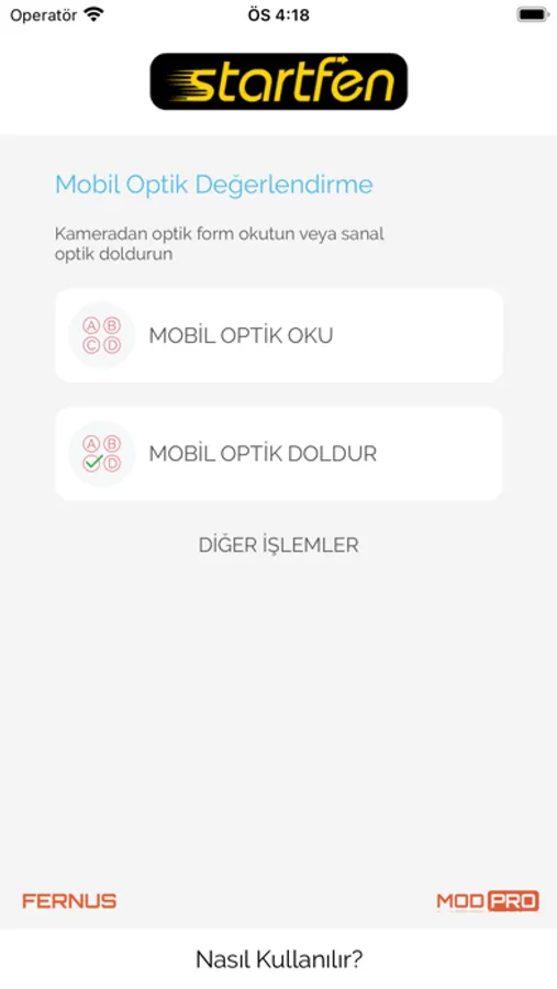■ Mobil Optik Değerlendirme uygulaması MOD-PRO'yu açın. Formunuzu okutun.