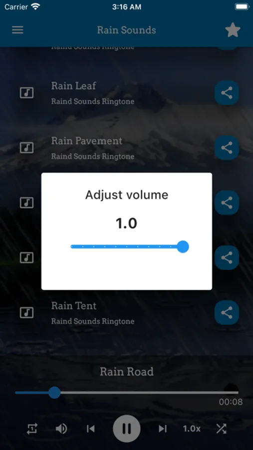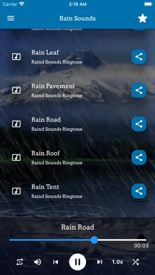 The largest collection of relaxing rain sounds for your phone. Many rain sounds (free and HD) mixable with thunders and music in order to reach a state of complete relaxation.