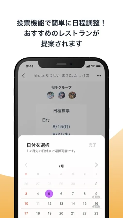 ・日程を調整する機能により、お互いのグループが遊べる日を簡単に決められます。