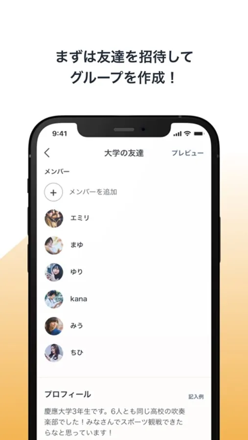 自分でグループを作るか、友達にグループに招待してもらいましょう。