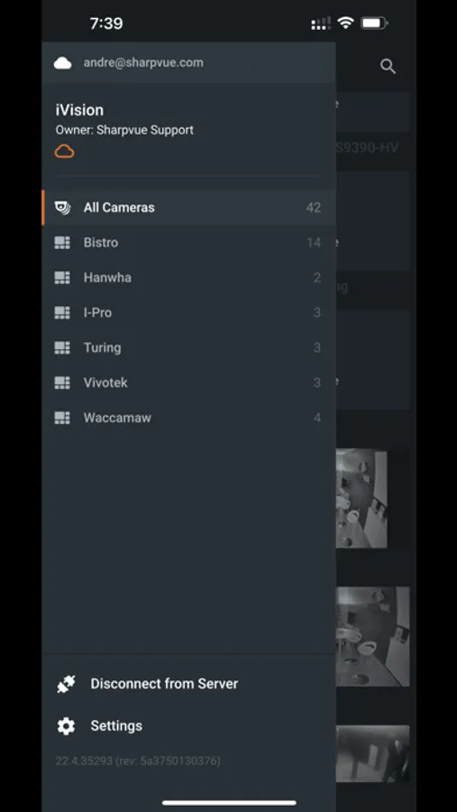 * CONNECT - via Wifi or Data connection to local, remote, or Sharpvue Cloud connected Sharpvue iVision systems.