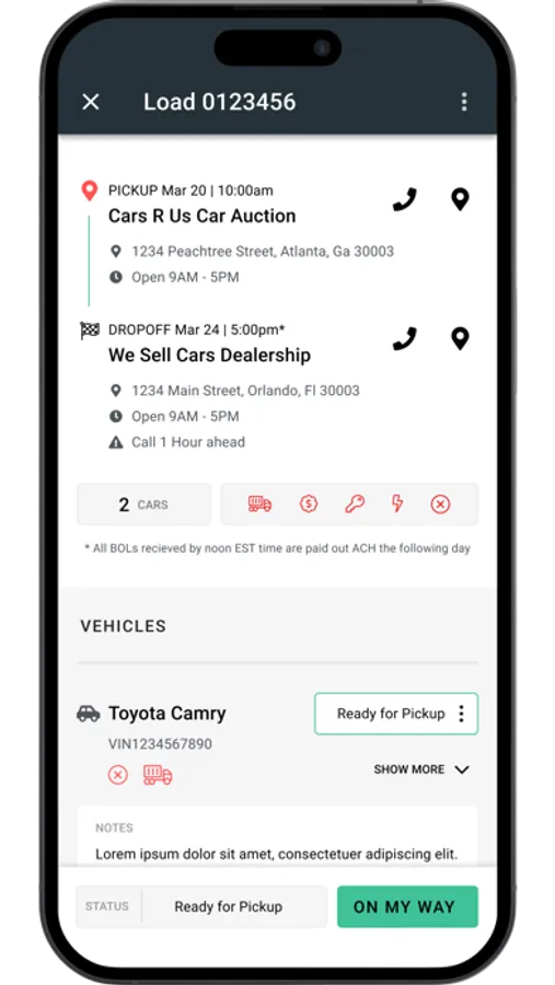 Your job is hard enough, so we optimize shipments by bundling multiple vehicles so you can earn more and reduce empty miles. We pay within two days with no fee so you increase your earning potential and grow your business.
