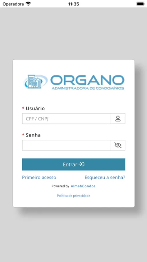 Este aplicativo é exclusivo para usuários da Organo Administradora de Condomínios.