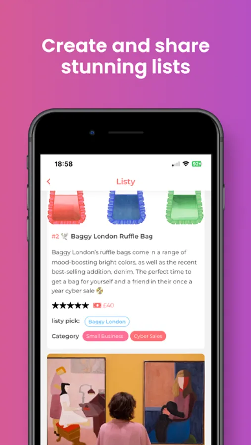 With Listy you can discover and create beautiful lists about restaurants, books, activities, brands and everything in between!