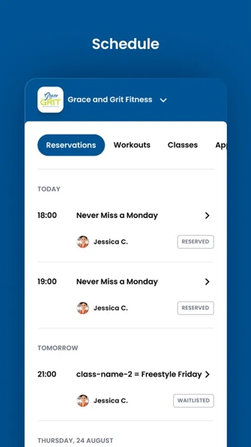 For members of Grace and Grit Fitness to reserve their place in a class, sign up for gym events, and general account management like updating headshots and credit card on file.