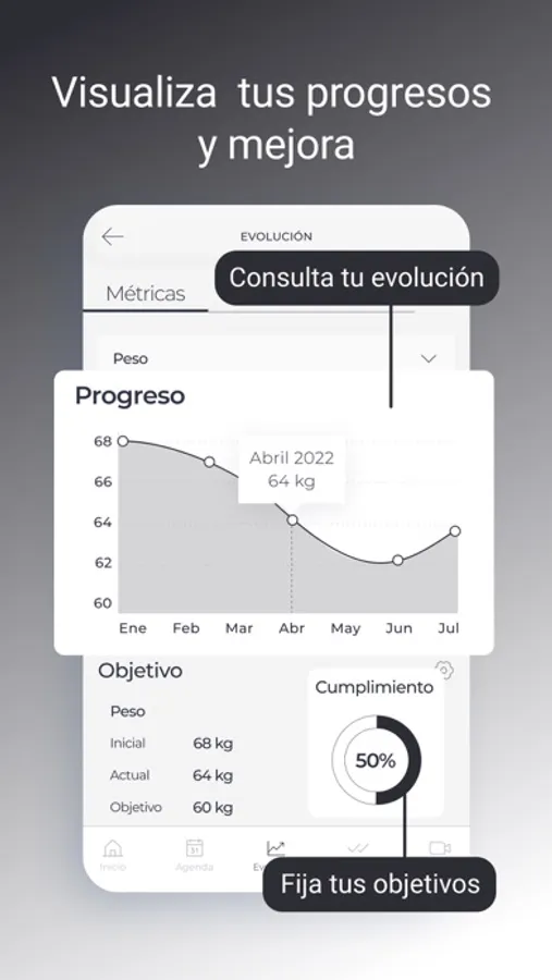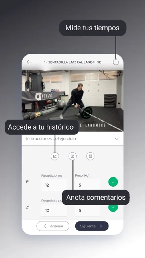 Registra tus series, repeticiones, pesos y más variables y celebra tus mejoras a través de los gráficos que te mostrarán donde empezaste y donde estás ahora.
