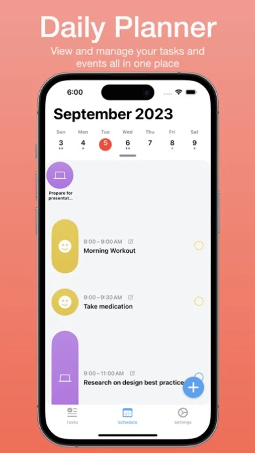 • Unified Schedule: View and manage your tasks and events in one place with the integrated Schedule view.