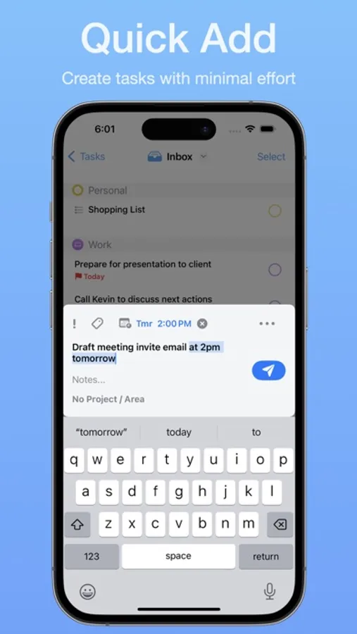• Frictionless: Easily create tasks from anywhere with Quick Add and natural language recognition.