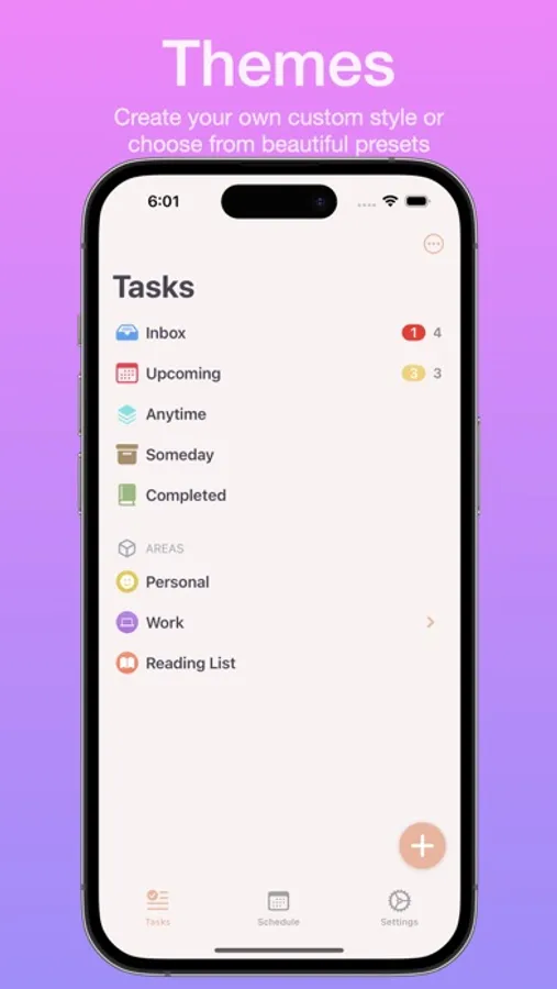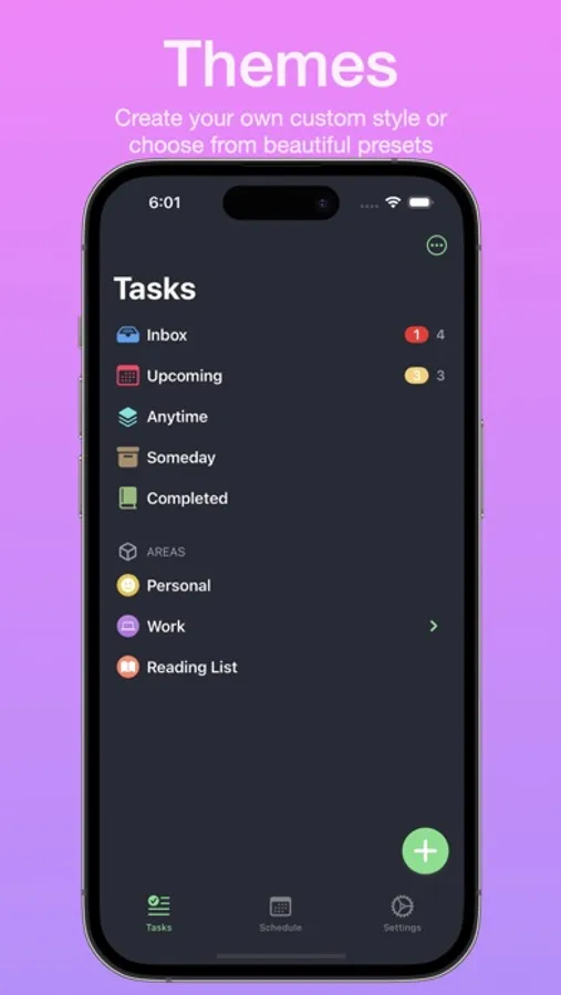 • Flexible Organization: Group and categorise your tasks as you see fit, with features like subtasks, tags, projects, areas and more.