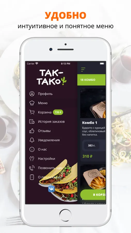 Воспользуйтесь удобным приложением для заказа еды «ТАК-ТАКО».