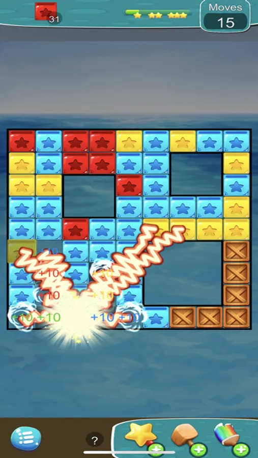 Everyone can play this matching block game, but it is also incredibly difficult. You can use a power-up item to make it easier, but don't let the move count down to zero or you will lose. Tap the box you want to blast, and if you can get two or more of the same color, you will score. Clear all the requirements to win the level.