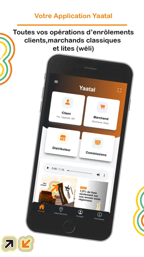 Orange Finances Mobiles Sénégal, Etablissement de Monnaie Electronique agréé sous le numéro EME.SN.006, Société Anonyme avec Conseil d’Administration au capital de sept milliards (7.000.000.000) de francs CFA, ayant son siège social au Lot N°02, Cité Keur Gorgui, BP 69 Dakar, immatriculée au Registre du Commerce et du Crédit Mobilier de Dakar sous le numéro SN.DKR.2015.B.9614, (ci-après désignée « OFMS ») a mis en place une application mobile nommée Yaatal destinée à ses partenaires distributeurs et vendeurs terrains d’Orange Money (VTO).