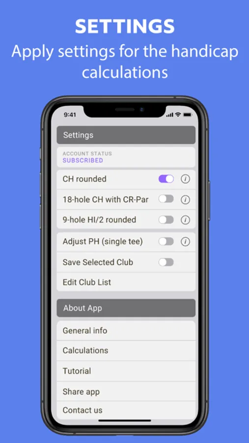 This app is not endorsed by any golf governing bodies. Users are responsible for ensuring the accuracy of the input data, the settings and the handicaps obtained from the app are applicable and accurate.