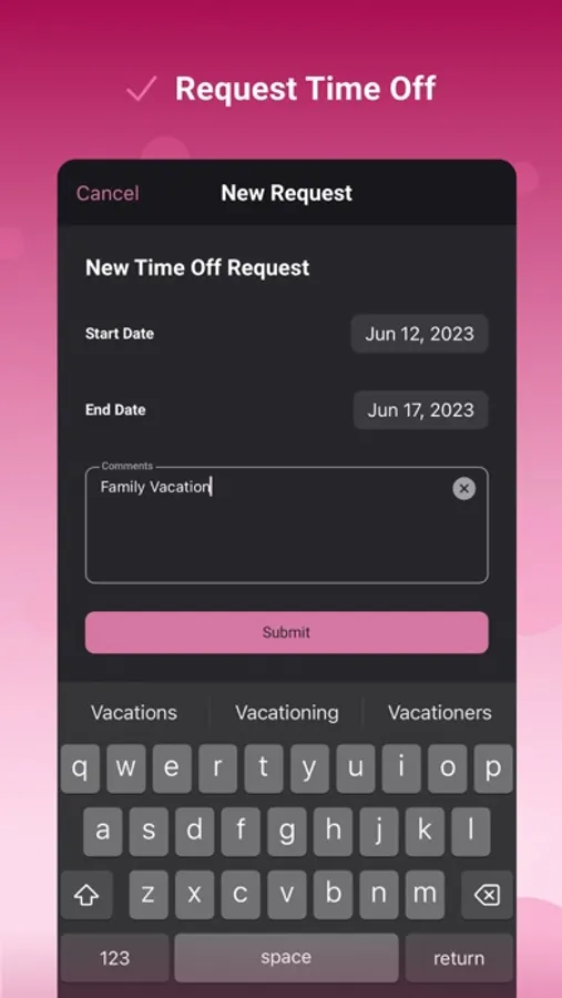 To get started, launch the app, choose "Register", then enter your company code, email and password, provided by your manager.
