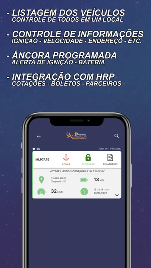 Com o aplicativo Amutual Sat você terá seu carro na palma de sua mão, com mais segurança e confiabilidade, podendo acessar dados dele a qualquer hora e em tempo real.