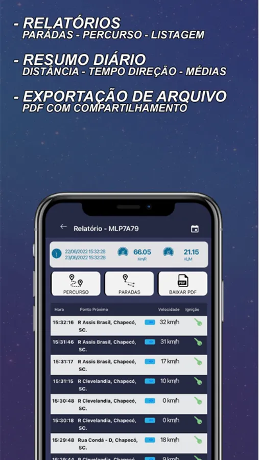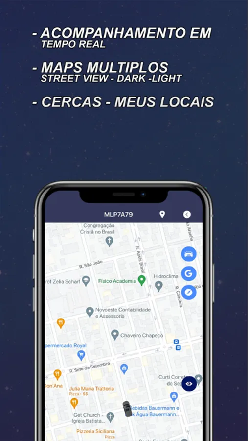 Você poderá ver aonde estão todos os seu veículos no mapa, e poderá consulta o trajeto diário, e visualizar todos os locais que seu veículo esteve no dia.