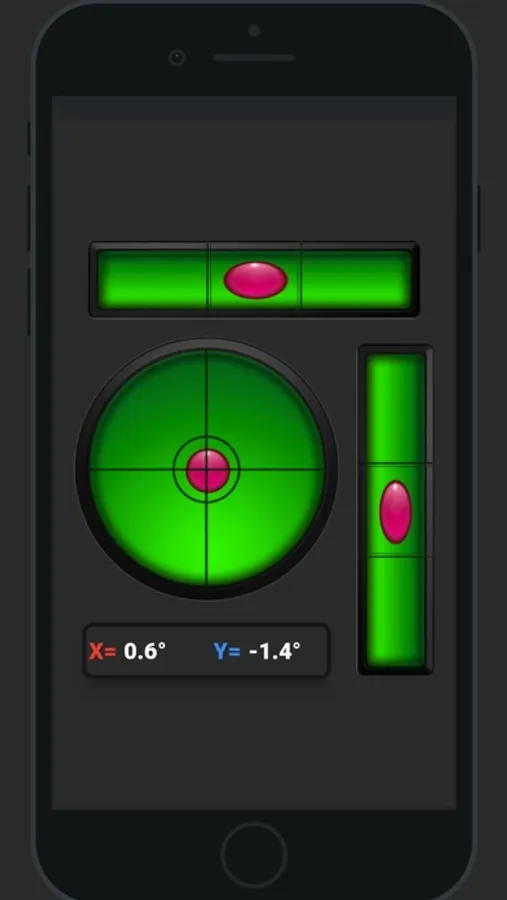 A conventional level meter has a slightly curved glass tube that is not completely filled with liquid. It usually consists of colored spirit or alcohol with bubbles in the tube. On gentle slopes the bubble moves away from the usually marked center point. The Spirit Level app attempts to emulate a real level meter and displays the data as a real level meter would.