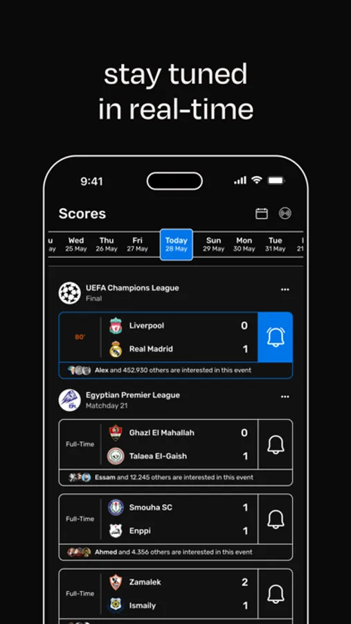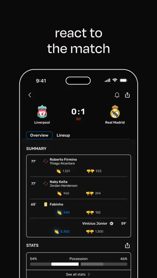 - Have a live score you can interact with, share on your feed and add to your moments.