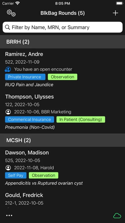 * Collaboration between Physicians and Allied-Health Practitioners: With our new background Cloud Sync, all data is available to all members of your group automatically. All patients, hospitalizations, face sheets, notes - everyone.