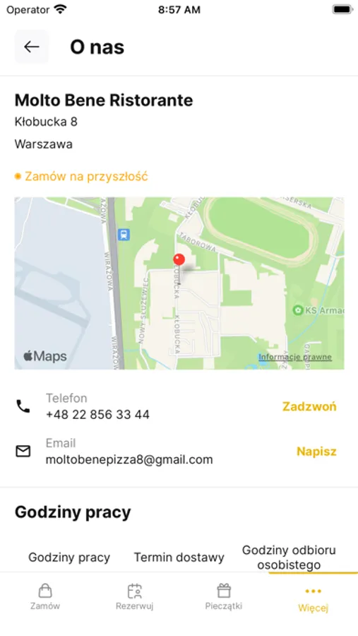 Oprócz zamawiania online aplikacja pozwala sprawdzić: