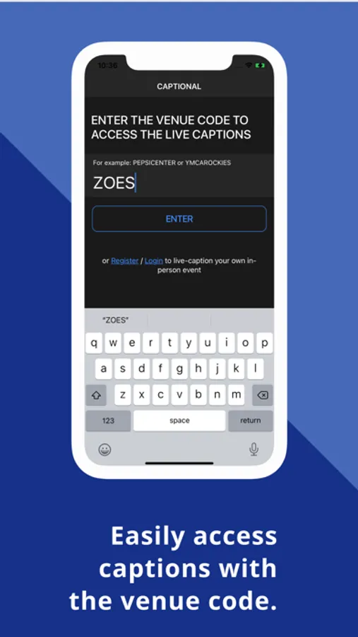 Use Captional to access real-time captions for in-person events. Simply type in the Room ID to instantly read or translate what is being said on stage into 30 languages.