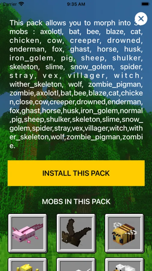 - Morphing : This Add-on allowed you to morph into 30 mobs :