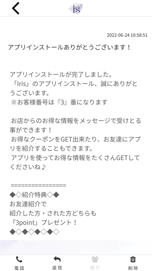IrisのアプリをSNSを通じてお友達に紹介する事ができます。