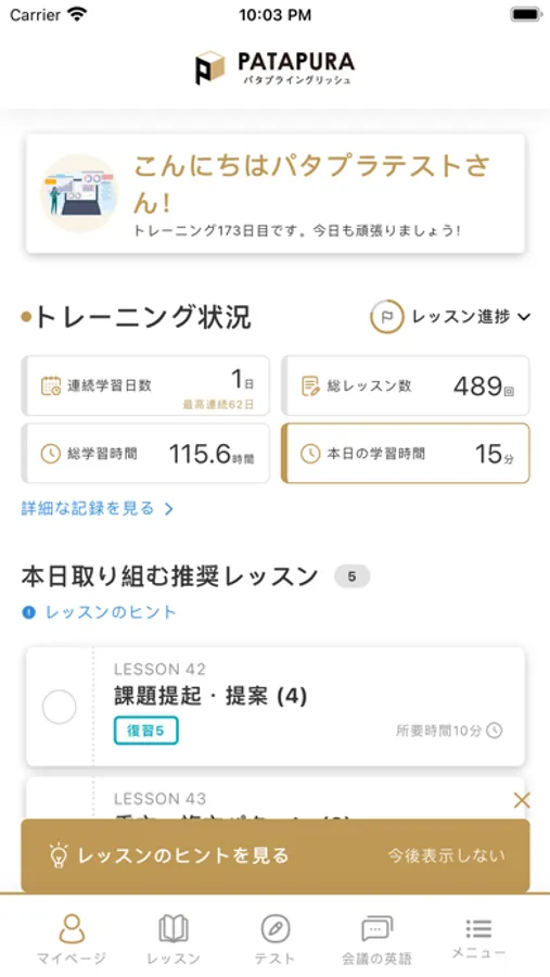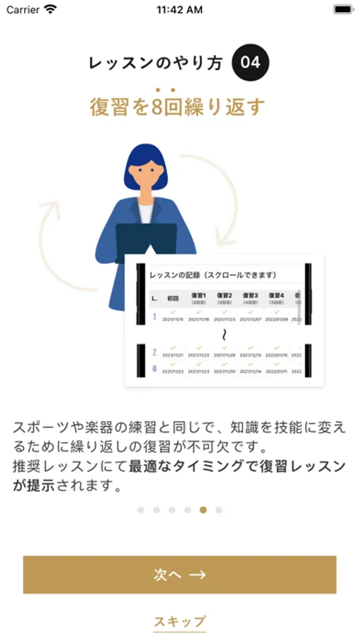 1の推奨レッスンで最適なタイミングで復習レッスンが提示されます。