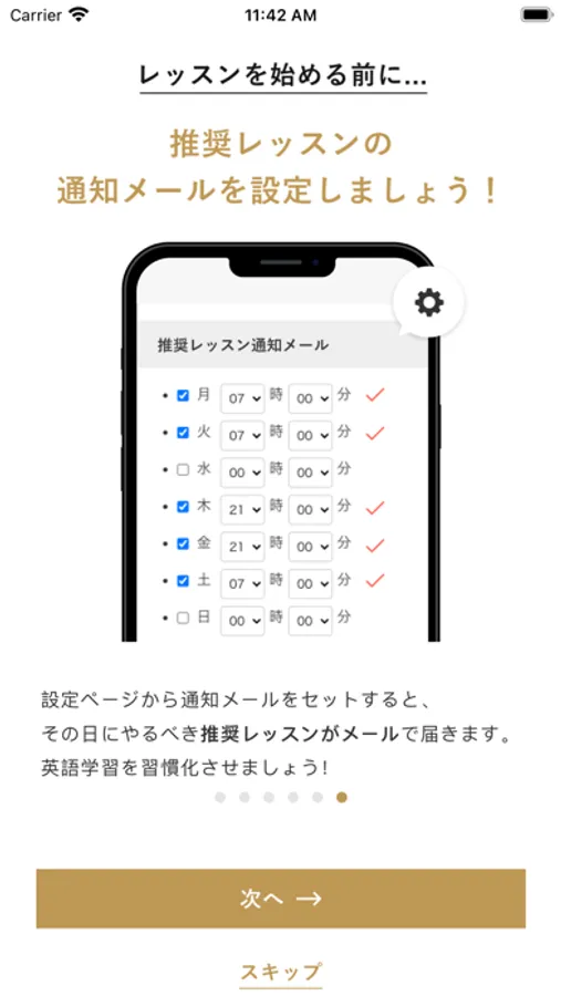 その日にやるべき推奨レッスンがメールで届きます。1レッスンは15〜20分程度。1日の中の隙間時間で1〜5レッスン取り組みます。