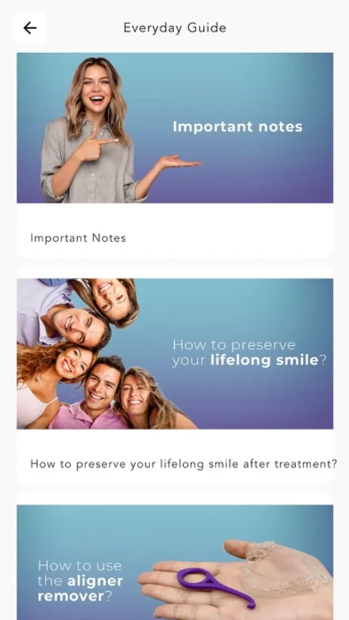 - Notifications: Personalized your notifications for changing aligners, doctor appointments and other events.