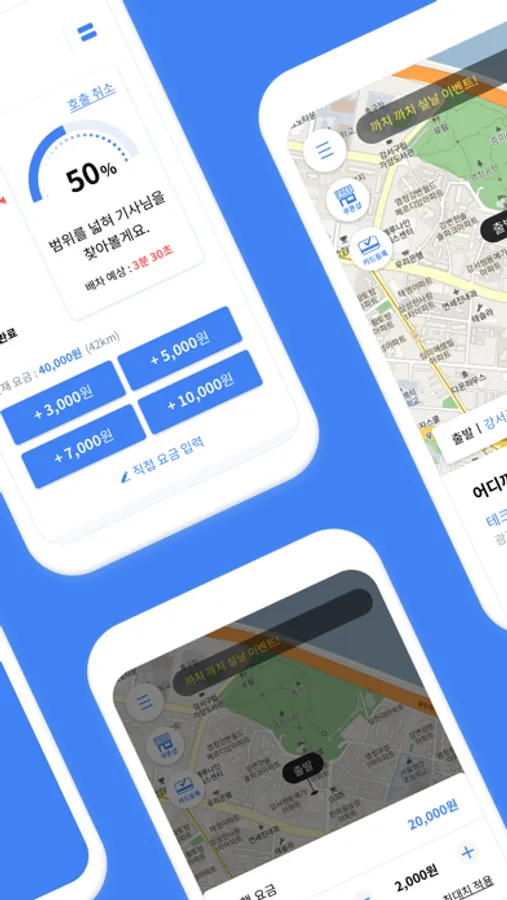 3) 요금 산정: 최적의 로직으로 빠르게 배차될 수 있는 가장 합리적인 가격을 제시합니다. 물론 요금은 스스로 조정할 수도 있습니다.
