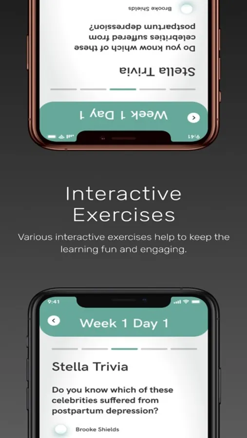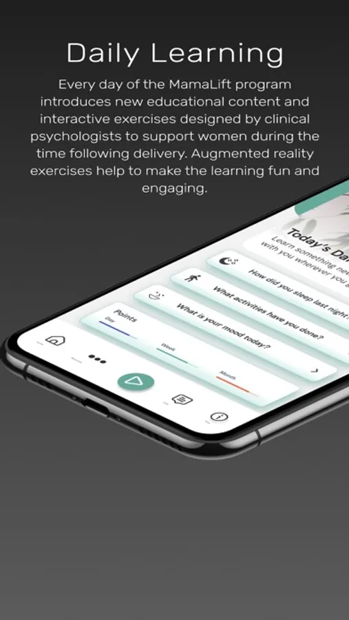 Every day of the MamaLift program introduces new educational content and interactive exercises designed by clinical psychologists to support women during the time following delivery. Augmented reality exercises help to make the learning fun and engaging.