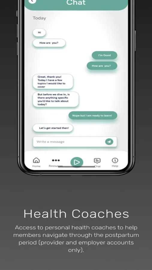 The content of the Website/App, including without limitation, text, copy, audio, video, photographs, illustrations, graphics and other visuals, is for informational purposes only and does not constitute/substitute professional medical advice, diagnosis, treatment or recommendations of any kind. You should always seek the advice of your qualified heath care professionals with any Questions or concerns you may have regarding your individual needs and any medical conditions. You agree that you will not under any circumstances disregard any professional medical advice or delay in seeking such advice in reliance on any content provided on or through the Website/App/Marketplace. Reliance on any such content is solely at your own risk.Health Coaches: Access to personal health coaches to help members navigate through the postpartum period (provider and employer accounts only).
